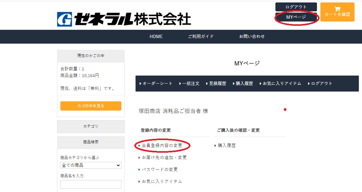 ※会員情報について会社名・住所・電話番号は当社データ登録されている情報の記載となります。代表者名は仮に「消耗品 ご担当者」となっております。会員登録内容の社名・住所・電話番号・代表者名を変更される場合は当社にご連絡願います。